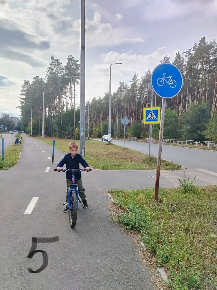 Важно объяснить, что знак — это предупреждение для водителей, но не отменяет правил для пешеходов.Фото 4 (Николай под аркой во дворе): Основная опасность здесь — «ловушка ограниченного обзора». Арка создаёт «слепые зоны», из-за которых ни пешеход, ни водитель не видят друг друга до последнего момента. Также в таких арках, туннелях и под мостами часто бывает плохое освещение, что усугубляет ситуацию.Фото 5 (Николай на велодорожке): Здесь кроется «ловушка ложной безопасности». Ребёнок находится на специально выделенной дорожке и чувствует себя в полной безопасности, из-за чего может потерять бдительность. Опасность возникнет в тот момент, когда эта дорожка пересечётся с дорогой или выездом из двора. Ребёнок может не остановиться и не посмотреть по сторонам, выезжая на проезжую часть.Фото 6 (Николай с велосипедом переходит дорогу по пешеходному переходу): Здесь опасность в «ловушке отвлечённого внимания». Ребёнок сосредоточен на том, чтобы удержать и перевезти велосипед, и может забыть посмотреть по сторонам перед выходом на проезжую часть.Фото 7 (Игра с мячом у дороги): Это классическая «ловушка-игра». Ребёнок увлечён игрой и может внезапно выбежать на дорогу за мячом, совершенно забыв об опасности. Ситуация усугубляется припаркованными машинами, которые создают «слепые зоны».Фото 8 (Николай выходит из подъезда и спускается с крыльца): В этой ситуации кроется во-первых «ловушка неожиданного выхода на дорогу». Ребёнок может внезапно выбежать на проезжую часть из подъезда или из-за припаркованной машины, например, увидев знакомых на другой стороне улицы. Во-вторых, «ловушка с припаркованным автомобилем» — водитель может начать движение, не заметив малыша, или кто-то может резко открыть дверь машины прямо перед ним.Все эти ситуации показывают, как важно проговаривать с детьми правила поведения даже в, казалось бы, безопасном дворе.#НеделяБДДВоскресенье#НеделяБДД63#НеделяБезопасности2025