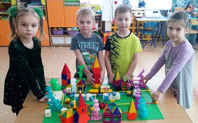 — Наш город получил название «Космоград» — место, где мечты о космосе становятся реальностью!7. Построили здания, транспорт, трассы, космические станции, разные технические приспособления для жизни в космическом пространстве из разных видов конструктора: «Тико», «Полёт», «Магнитный», «Шарики», «Цветная мозаика»